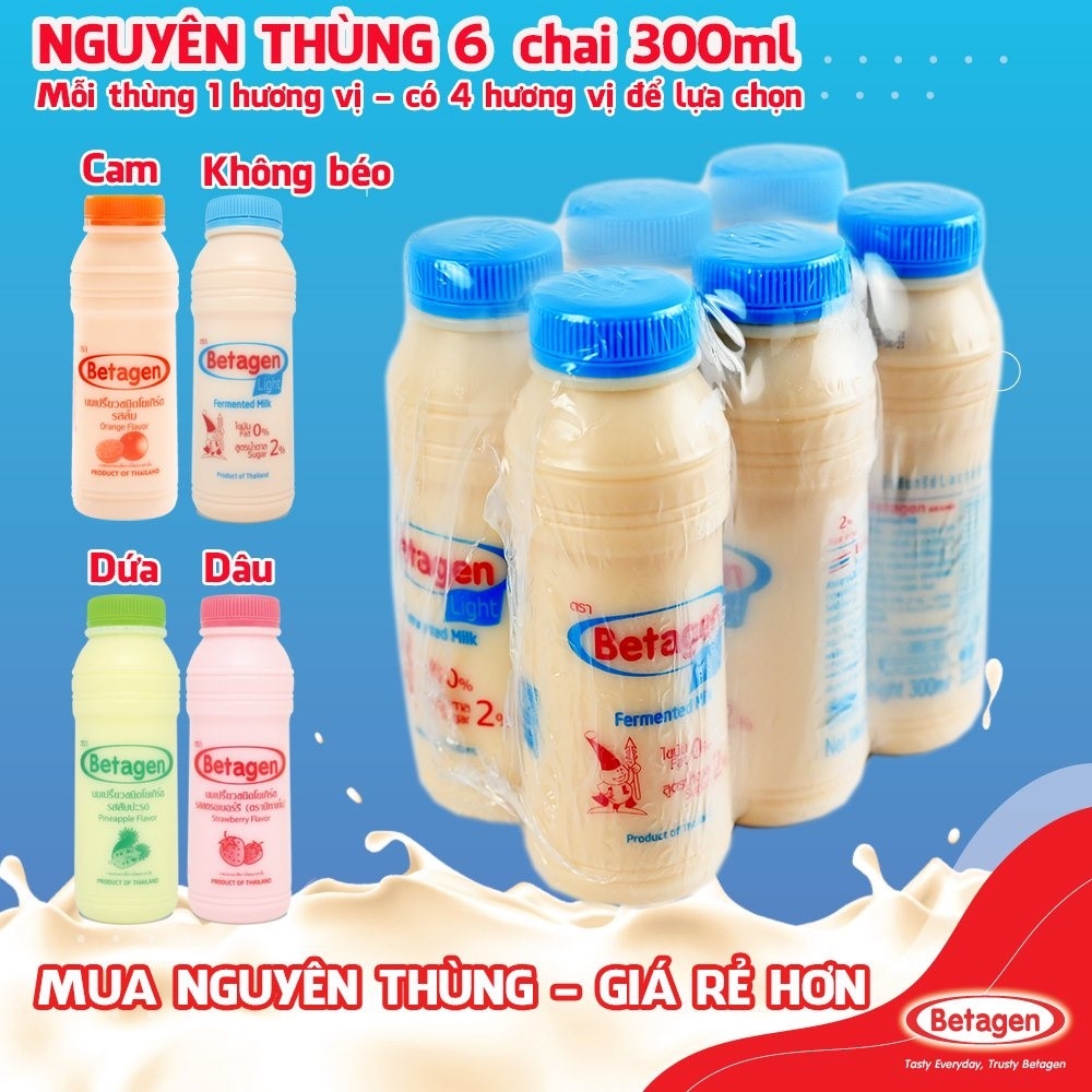 Sữa uống lên men Thái Lan BETAGEN hương dâu/cam 300ml bổ sung lợi khuẩn cho đường ruột